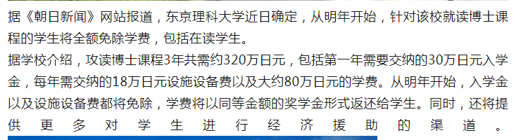 日本東京理科大學(xué)將實行博士課程學(xué)費全免!